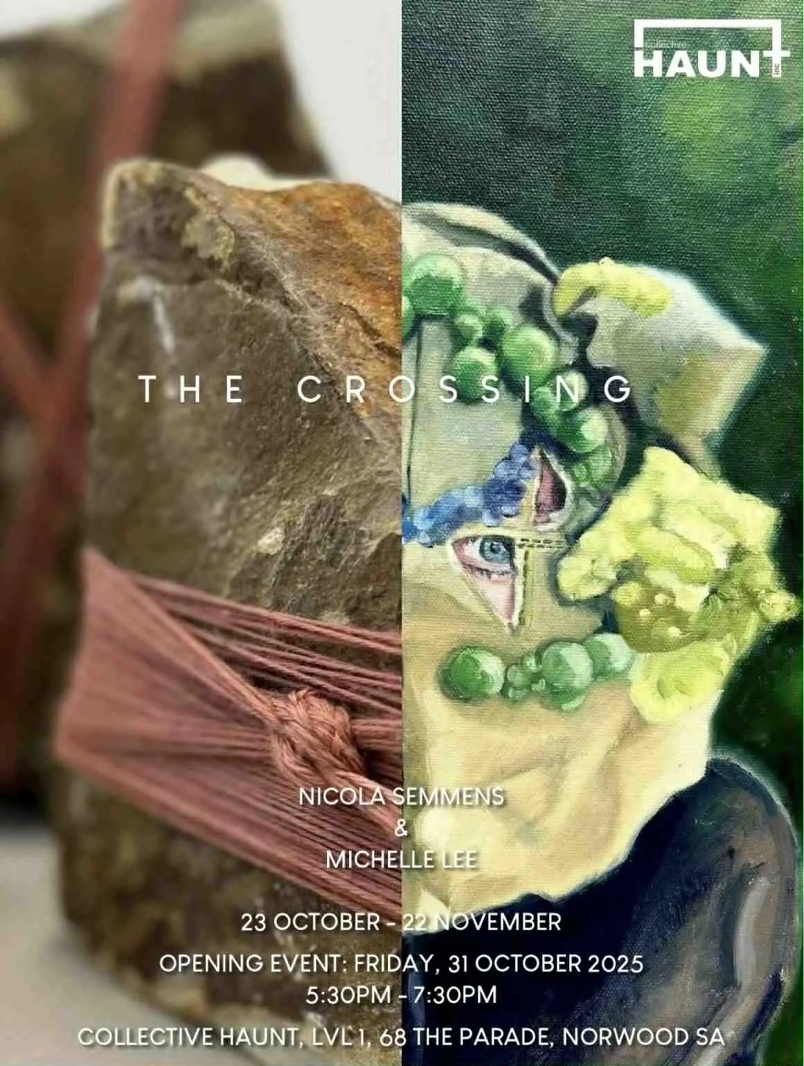 Exploring liminality and the thresholds between worlds, The Crossing brings together paintings, installation, and participatory work that invite quiet reflection and connection beyond the visible.
